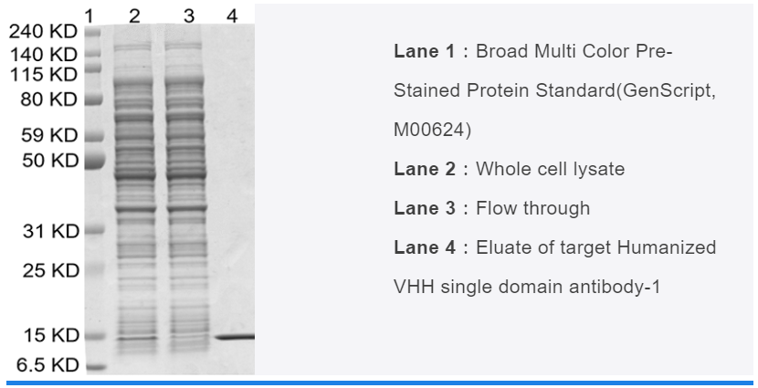 1.Anti-Humanized VHH Affinity Resin FF從E. coli裂解液中純化人源化VHH#1蛋白。